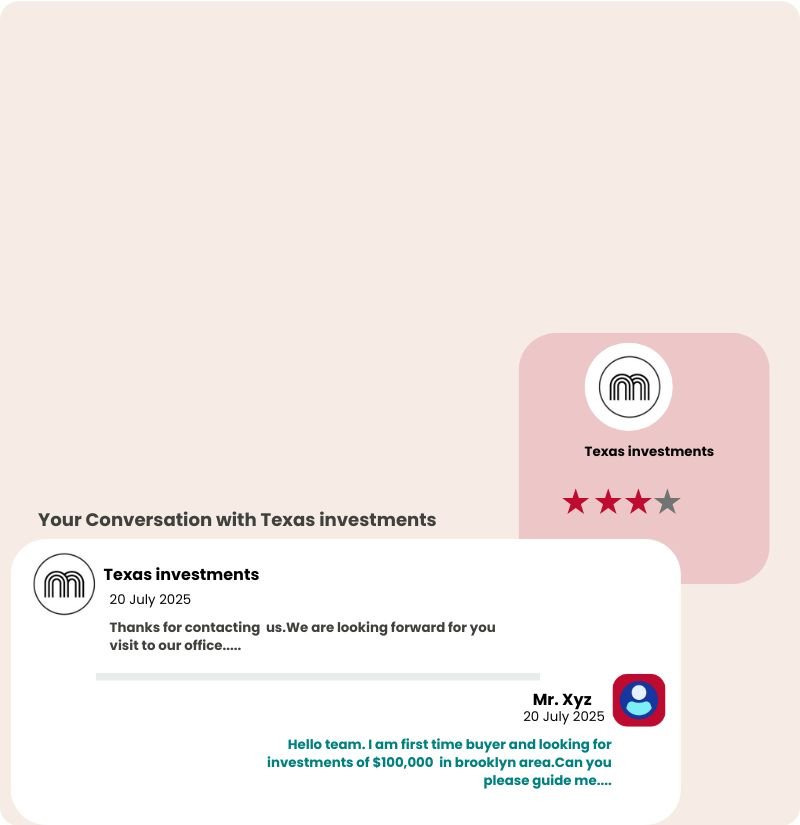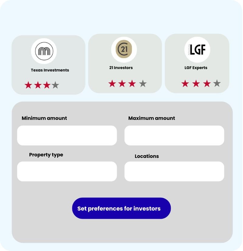 Customised the experts as per your investment needs like investment amount,property type,region etc.